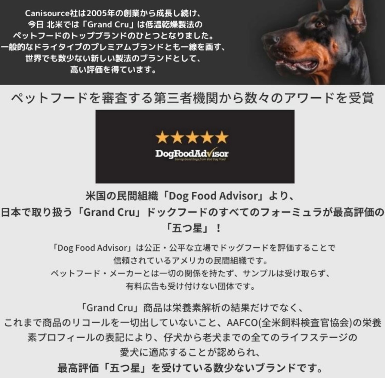 Canisource『Grand Cru』は独自の低温乾燥製法により食材が本来持っている多くの栄養素と風味・食感を保ち、通常のドライタイプのドックフードよりも高い栄養価があります。